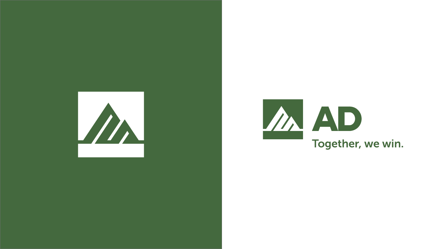 That included a logo incorporating an evolution of AD’s “mountain mark,” a symbol that had come to be closely identified with the group; a logo architecture for their nine divisions; a streamlined color palette leveraging deep hues that convey strength and confidence; and a rugged, realistic photo style that authentically reflects their members’ industries.