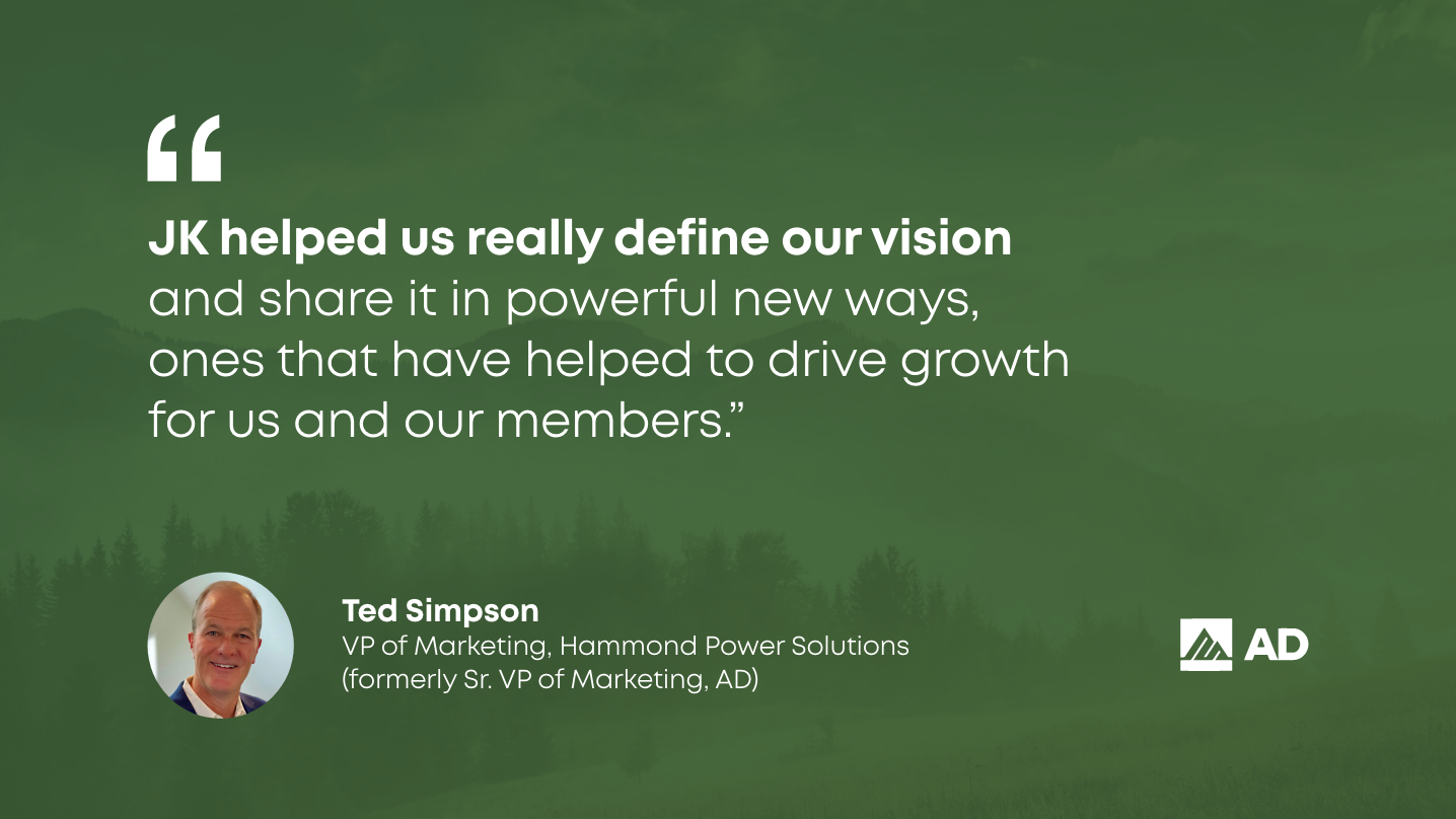 AD’s new brand story was built around three core brand pillars we uncovered during our work together: their focus on investing in relationships, the entrepreneurial spirit of their members, and the passion, purpose, and pride that drives and unites them.